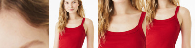 90% airlume combed ringspun cotton/10% polyester. Pre-shrunk. 1x1 micro rib. Thick spaghetti straps. Side seams. Cropped length. Tear out label.