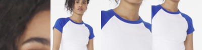 Athletic heather 90% airlume combed ringspun cotton/10% polyester. Pre-shrunk. Fitted style. 1x1 micro rib. Bound contrast neckline. Contrast raglan sleeves. Side seams. Cropped length. Tear out label.