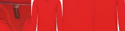 80% cotton/20% polyester. Soft cotton faced fabric. Three yarn low shrinkage fleece. Brushed back fleece. Drop shoulder style. Zip neck with self colour plastic zip pull. Taped neck. Ribbed cuffs and hem.