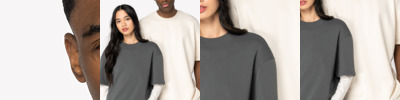 85% organic combed cotton/15% recycled polyester. Enzyme washed. Unbrushed. Oversized fit. 1x1 ribbed collar. Half moon back yoke. Twin needle sleeves and hem. Tag free. Garment dyed after assembly, colours may vary slightly. Recycled polyester is made from post-consumer waste.