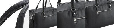 100% leather-look PU. Recycled polyester lining. Detachable adjustable shoulder straps. Main compartment with two way zip. Front zip pocket. Laptop compatible up to 16". Multiple internal pockets. Internal water bottle holder. Tear out label. Capacity 11 litres.