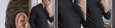 50% merino wool/50% polyacrylic. Tailored fit. Fully fashioned. Set in sleeves. SBS zip neck. Ribbed cuffs and hem. Machine washable.