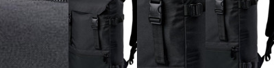 600D polyester. Waterproof fabric. Grab handle. Ergonomic, adjustable padded shoulder straps. Lid with zip pocket and adjustable buckle closure. Main compartment with drawcord closure. Laptop compatible up to 17". Compression straps. Front zip pocket. Access for decoration. Capacity 17 litres.