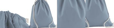 100% organic cotton. Organic or in-conversion to organic cotton. Rope drawcord closure. Cut out label. Capacity 12 litres.