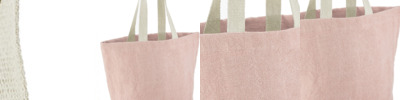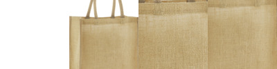 Unlaminated starched jute. Cotton carry handles (55cm long). Cut out label. Capacity 21 litres.