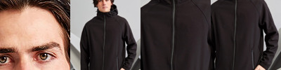 * Dry-Excel(tm) 100% polyester double-knit * Dry-Excel 92% polyester/8% spandex mesh inserts * Wicks Moisture * Woven label * Front zipper * Set-in sleeves * Front zippered pockets * Open bottom * Dropped tail hem