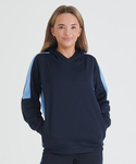Unisex adults’ polyester hoodie with brushed back fleece inner for comfort. Contrast sleeves and side panelling on contrast only. Ribbed cuffs and hem. Crossover hood neck at centre front. Zipped welt pocket in front panel side seam. Three-piece hood. Offered in contrast and solid colours. Tear-out label.