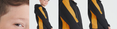 Unisex kids’ hoodie. Contrast sleeves and side panelling on contrast only. Ribbed cuffs and hem. Crossover hood neck at centre front. Zipped welt pocket in front panel side seam. Three-piece hood. Offered in contrast and solid colours. Tear-out label.