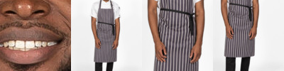 - This bib apron features an adjustable halter with brass eyelets to hold it, and the waist ties, in place.