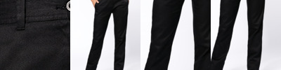 65% polyester/35% cotton. Part elasticated waistband with belt loops. Zip fly with button over. Two side pockets. Two rear piped pockets with reinforced stitching. Hanging loop on inside waist. 60°C wash.