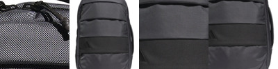 Top padded grab handles. Main zippered compartment. Secondary zippered compartment. Front zippered pocket. Zippered back compartment with large mesh window for ventilation. Side grab handles. Detachable, adjustable, padded shoulder strap. Durable water-resistant bottom Shoe pocket. Dimensions: 10.5”h x 20”w x 10.5”d Volume: 2,200 cu. in./36 L Weight: 1.4 lbs./0.57 kg Materials: 600D rhombus poly/600D poly.