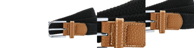 A stretch rubber braided belt with two colours to form a fashionable zig zag contrast pattern. Fastens with a chrome buckle and any part of the belt can be used to make and secure a hole for full fastening. A Tan faux leather piece supports the buckle mechanism and another piece wraps over the end for a neat finish. Available in colours to match the Chino's range from Asquith & Fox®. Product contains no branded neck label. Removable Kimble or looped garment tags. Inner seam label holds important product information on one label with a second label containing brand information which can be cut-away. Please note old stock may contain a fixed branded label.