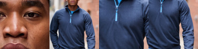 100% polyester Layerlite® micro fleece. Made from at least 30% recycled polyester. Unlined. Mini grid effect fleece. Raglan sleeves. Bound elasticated collar, cuffs and hem. Contrast low profile zip with chin guard and inner zip guard. Cut out label.