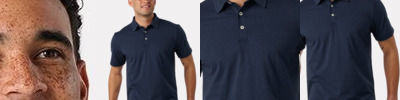 - Pique with slimmer fitting, flat knit at collar and bottom sleeves