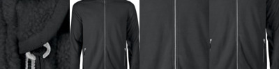 - Contrasting zippers and decorative flatlock seam on sleeve