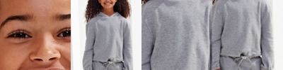 Oversized. Cropped. Relaxed fit. Hoodie. Dropped shoulders. Drawcord fastening at waist. Drawstring tie to waist which is sewn in at the back of the garment. We recommend using block out vinyl and inks.Product contains no branded neck or waist label. Removable Kimble or looped garment tags. Inner seam label holds important product information on one label with a second label containing brand information which can be cut-away. Recycled polyester.