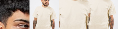 - The tee has a semi-rounded v-neckline, dropped shoulders, and a shirttail hem with side slits