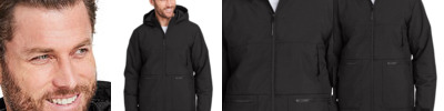 - Three-piece visored hood cinches tight to seal out sleet and wind