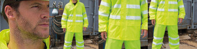 Waterproof 2000mm and windproof protection. Stowable bag. StormDri 2000 fabric. JACKET: Stud closing outer storm flap with heavy duty zip. Drawstring hem. Integral drawstring hood. Front pockets with stormflap. Elasticised cuff. Taped seams. Hangtag. Mesh-lined back vent. Reflective body bands. TROUSER: Side access pockets. Elasticised waist. Reflective leg bands. Taped seams. Decorating methods: Transfer print, direct print. Decorators access point: open.