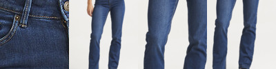Straight fit. Stretch denim. 5 pocket styling. Light blasting and whiskering (blue washes only). Self-fabric belt loops. Shank button and YKK zip fly fastening. Metal rivet detail at pocket corners. Twin needle stitching detail.