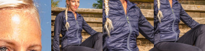 Showerproof, Breathable. Padded body feature; Anatomically curved on women's. Super stretch fabric hood and hems. Invisible zip side pockets. Bound cuff, hem and hood. Reflective detail. Thumbhole cuff. Integral hood. Quick dry. Virtually weightless, ideal layer garment. Thumbholes help top stay in place. Articulated sleeves allows full motion. Attractive padded body using faux down. Ventilated performance, lightweight insulation. Super-Stretch fabric and ergonomic seams allow natural movement.