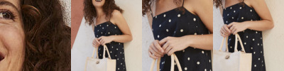 Refined Jute/Cotton blend for ease of decoration. Cotton carry handles. Handle length: 35 cm.