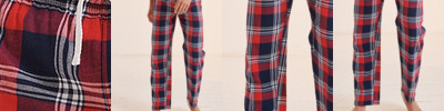Woven tartan lounge pants with plain hem. Full elasticated waist with contrast mock drawcord. Tear-out label.