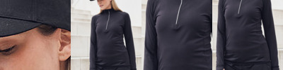 ¼ zip Jersey top with wicking finish. Long sleeves with thumbhole and fold over cuffs. Elasticated binding on cuffs and hem. Raglan shoulder seams with flatlock stitching and reflective dots detail on back of garment. 1/4 length zip with reflective trim and semi-automatic lock zip slider. Stand up self-fabric collar. Side panels. Key pocket on left back panel seam with concealed zip and inner headphone access hole. Tombo tear-out label.
