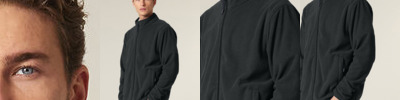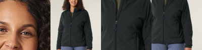 Set-in sleeves. Elastic binding at neck edge, cuffs and hem. Inside back neck grosgrain loop. Nylon coil zip with metal zip pull and cord ending. Brushed fabric with anti-pilling finish on the inside and outside. Front side welt pockets with zip opening. Inside back neck tape in recycled polyester.