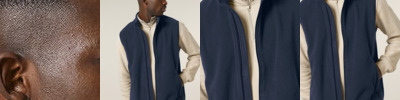 Sleeveless. Elastic binding at neck edge, armhole and hem. Inside back neck grosgrain loop. Nylon coil zip with metal zip pull and cord ending. Brushed fabric with anti-pilling finish on the inside and outside. Front side welt pockets with zip opening. Inside back neck tape in recycled polyester.