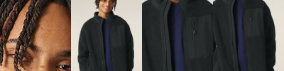 Set-in sleeves. Elastic recycled binding at cuffs and hem. Inside back neck recycled binding loop and back neck tape. Plastic Vislon zip with metal zip pull and cord ends. Fully bonded inside polar fleece layer and anti-pilling finish. Front side contrast softshell welt pockets with hidden zip closure. Contrast softshell fabric at pocket, back yoke and outer collar band. Inside invisible zip at the wearer’s left chest for easy decoration.