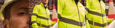 100% polyester 280 series anti-pill Symmetry® fleece. Made from at least 30% recycled polyester. Conforms to EN ISO 20471: 2013 + A1: 2016 class 3. RIS-3279-TOM (orange only). Unlined. Taped neck. Full length contrast zip. Two angled ID reflective tape bands around the body, sleeves and one on each shoulder. Two front zip pockets. Open cuffs and hem. Branded tab on lower left side seam.