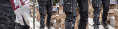 100% polyester. Made from at least 30% recycled polyester. Woven four-way stretch fabric. Water repellent finish. Part elasticated waistband with belt loops. Zip fly with button over. Detachable holster pockets with slide system for optional use. Two side pockets. Two rear pockets. Side leg multi-use cargo pockets with contrast zip pulls. Ripstop stretch fabric to outer thigh, lower leg and seat panels. Cordura® top loading knee pad pockets. Reinforced seams with triple stitching. Branded.