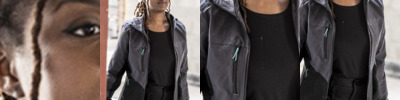 Two layer soft shell. Polyester outer layer, made from at least 30% recycled polyester. Grid effect inner layer. Woven four-way stretch fabric. Showerproof. Grown on hood with adjusters. Hanging loop. Full length zip with chin guard and inner zip guard. Right chest zip pocket with contrast zip pull. Contrast underarm and lower body panels. Two front zip pockets. Bound elasticated cuffs and hem. Branded.