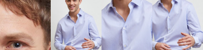 100% combed ringspun cotton. Ribbed collar. Concealed, four self colour button placket. Side vents. Twin needle sleeves and hem. Unbranded size label.