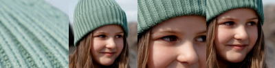 100% recycled polyester. Micro fleece lining. Double layer knit. Cuffed design. Self colour pom pom. Cotton twill patch for decoration (5 x 5cm). Tear out label.