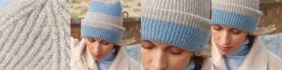 53% recycled polyester/33% nylon/10% acrylic/4% elastane. Luxury soft touch yarn. Single layer knit. Block stripe design. Cuffed design. Engineered crown. Tear out label.