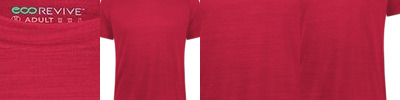 - Recycled Polyester: Polyester fiber in this blend is made from recycled content including plastic bottles. Recycled poly helps reduce water usage, energy consumption and CO2 emissions when producing this garment.