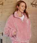 100% polyester. Teddy fleece fabric. Funnel neck with 1/4 zip. Slightly cropped length. Two front pockets with jersey lining. Elasticated cuffs and hem. Tear out label. Co-ordinates with BH201 and BH203.