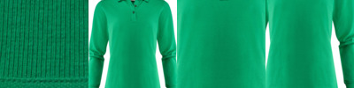 - Pique with slimmer fitting, flat knit at collar and bottom sleeves