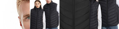 Heated padded gilet with five fast heating zones and three heat settings. Independent front and back heating zones. Soft and comfy. Includes pocket to store power bank. Connects to most power banks via USB-A (power bank not included).