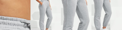 Soft-feel joggers. Unisex style. Relaxed loose fit. Inner brushed fleece. Recycled polyester. Elasticated waistband and cuffs. Buttonhole stitched eyelets. Cords with painted metal ends.