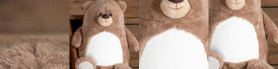If you go down to the woods today… you might meet this handsome Zippie brown bear with its soft plush fur and cute sewn features. The tummy is easily decorated, with zip access and removable tummy pad providing access for embroidery and printing. Complies with EN071 European Toy Safety regulations. Remove all hang tags and their fasteners before giving these items to a child. Suitable for all ages. Height: 34cm. REACH IS09002.