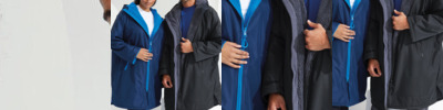 Unisex. Oversized. Full-length two-way plastic zip with easy pull toggles. Chin guard. Oversized fit. Side vents. Adjustable cuffs with hook and loop fastening. Side zip pockets. Inside pocket with zip on the left side. Inside patch pocket on the right side. 3-panelled hood. Loop on the centre back of the jacket for hanging the robe. Dropped back hemline. (5000/5000 waterproof and windproof). Embroidery access to the back and chest area can be accessed through here. Waterproof taped seamed outer layer. Sherpa fleece interior. Rebrandable stuff sack carry bag with double drawstring straps. CE Class 1 Certified.