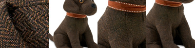 100% polyester, with a polyester and aggregate filling. One size. Available as a terrier door stop or brown labrador door stop.