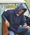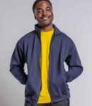 55% polyester/45% cotton. Brushed back fleece. Drop shoulder style. Full length YKK zip. Two front YKK zip pockets. Side seams. Ribbed cuffs and hem. Twin needle stitching.