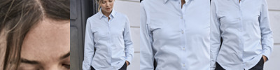 72% cotton/25% organic cotton/3% elastane. Mercerised cotton. Soft feel stretch fabric. Button down collar. Back yoke. Back darts. Single button cuffs with button on cuff gauntlet. Curved hem. Available in short sleeve PR386.