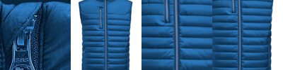 Shell fabric: 100% Recycled Polyamide, Ripstop, C.0 DWR Lining: 100% Recycled Polyester Padding: 95% Recycled polyester, 5% Polyester, Bluesign WP 600 - tested according to AATCC 22 Features two zipped side pockets and a zipped chest pocket for convenient and secure storage. The front yoke allows for easy personalization, making the vest uniquely yours. The elastic binding at the sleeves ensures a snug fit, while the adjustable hem with an elastic drawcord provides customizable comfort. Jacket includes an inside patch pocket with Velcro and a chin protector for added convenience and protection. Normal machine wash at 30 degrees Recycled Materials Also available in ladies sizes code HAR2121052