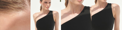 93% cotton/7% elastane. Single jersey. One shoulder vest. Double layer front. Silicone grip tape on front. Twin needle stitching. Tag free.