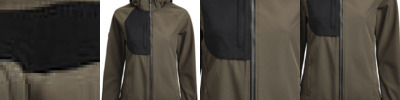 - Reinforcement / contrasts on sleeves and chest pocket.